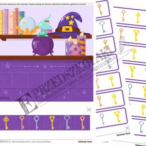 Wytnij wzory sekwencji oraz ilustracje. Zadanie polega na ułożeniu sekwencji na planszy zgodnie ze wzorem.