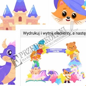 Wydrukuj i wytnij elementy, a następnie naklej je na kartonowej ramce. Poszczególne elementy mogą posłużyć również jako dekoracja sali.